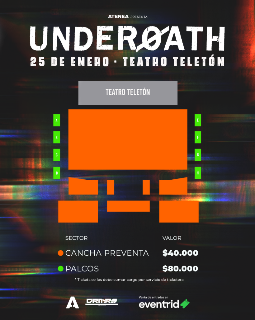No te pierdas la oportunidad de unirte a Underoath en esta noche especial del jueves 25 de enero en Teatro Teletón. Las entradas ya se encuentran a la venta a través de Eventrid. Produce Atenea.