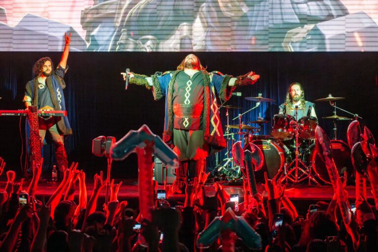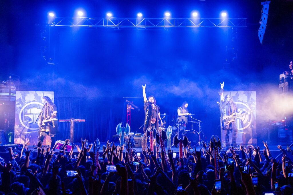 El show estuvo cargado de canciones del «Warfront» (2022), con algunos tracks de su antecesor «Wintersaga» (2019) para demostrar sus trabajos más aclamados y su función en vivo es correcta, más con las interpretación energéticas del guitarrista Claudio Falconcini y tecladista Federico Meranda muy enfocados en que el sonido sea fiel y la gente lo esté disfrutando, con esas letras que muestran lucha que no solo es ficticia, sino que es algo que sirve para uno mismo. Después de «Together We Rise» y advirtiendo que se viene el final, el lugar explota con «Diggy Diggy Hole», la canción más popular y la más coreada de la noche, y que presentó hasta su versión Dance Remix como una simpática muestra fuera del nicho de Folk / Power Metal.