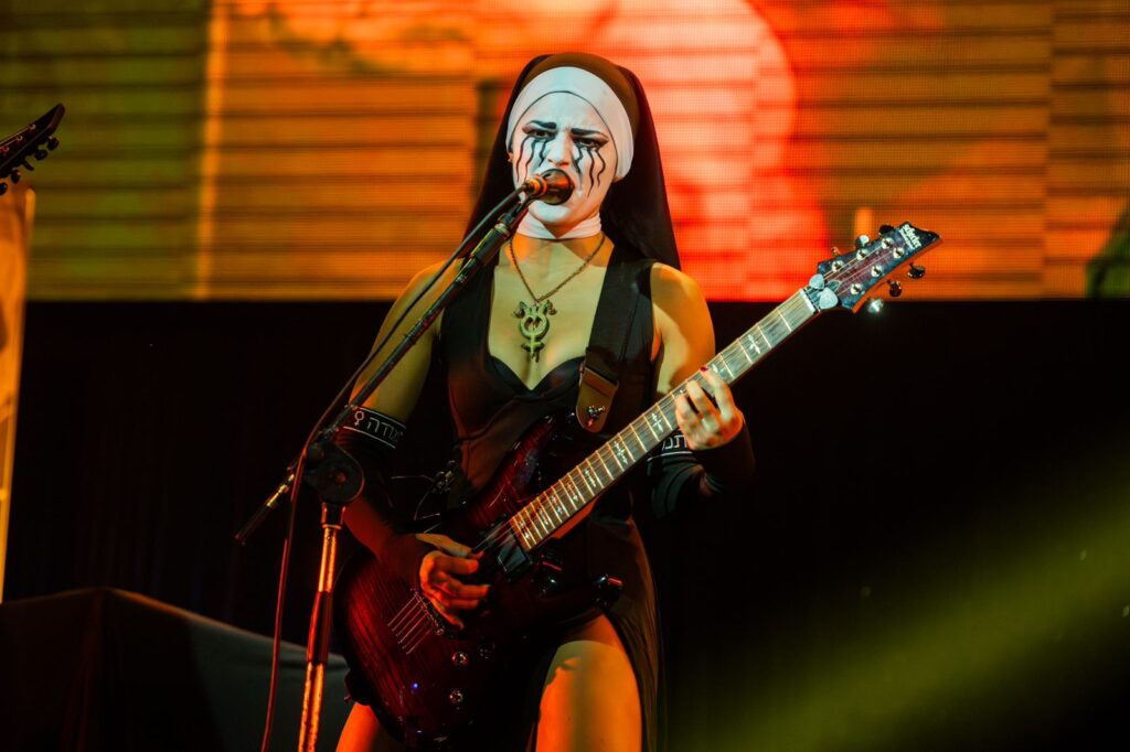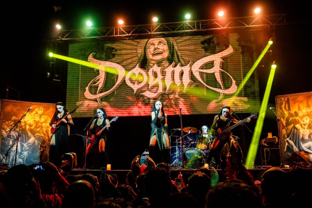Adelantándose en el tiempo anunciado de su comienzo que era a las 20:00, con la personificación e identidades incógnitas que existe en esta propuesta, Dogma realiza su presentación tocando casi completo su disco debut del mismo nombre, con el importante detalle que ésta es su primera gira internacional, lo cual se evidenciara en tocar muy bien y de a poco crear su potencial, donde fue percibido con gran actuación vocal, batería extraordinaria y riffs que no paraban de sonar pesado y melódicos. «My First Peak», «Free Yourself» y «Pleasure for Pain» son algunos de los temas que tuvieron estos puntos a destacar, además de un intervención con una bailarina realizando un acto de flexibilidad o un tributo a sus influencia donde metieron un Medley entre «Walk», «The Trooper», «Master of Puppets» y «Symphony of Destruction»… una absoluta locura. El público quedó encantado, atrapado y sorprendiendo completamente a todas y todos en el recinto, más a quienes no tenían idea o no conocían el paradero de Dogma. Con esto, no eran solamente una banda invitada, es una actuación de culto.
