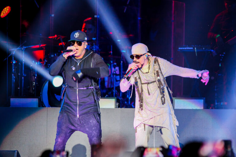 Un público ansioso que ya preparaba motores con otras canciones del género en la previa, se deja llevar a las 21:00 cuando el dúo aparece en escena, dispuestos a entregar un show que cubre dos décadas y ha sentido los brazos de Chile en diversas ocasiones. Acompañados con la producción que un acto de Reggaetón se preocupa desde banda de fondo, proyección de imágenes -que hasta mostraban recuerdos del pasado para entender la emotividad por su despedida-, juegos visuales y bailarines- no bastaron largos minutos para llevar a los presentes hacia la galaxia del perreo.