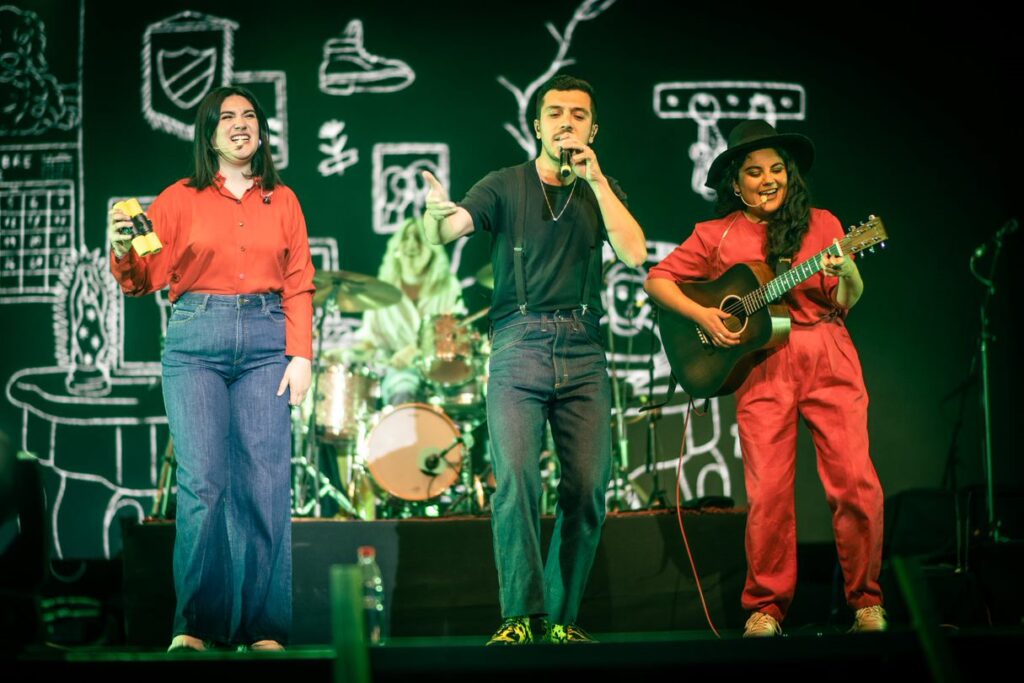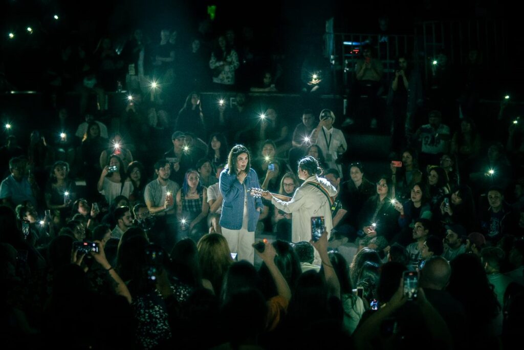 Yorka y Daniela aparecen sorpresivamente por unas de las entradas hacia la sala del teatro, ubicándose en mitad de éste con guitarra acústica y micrófonos de cintillo, “A lo Chayanne” como bromeaban. El público se sienta en el piso alrededor de ellas para escuchar la íntima rendición de «Darle Vuelta» y «Cae” de su disco «Humo» (2018), con Yorka solicitando la ayuda del público para ambientar con los flashes de sus celulares como si fuesen “Snitches”, aludiendo a Harry Potter. Aprovechando la ocasión de agradecer a quienes las han acompañado y seguido desde el inicio, y sintiéndose iluminadas como en éste momento con los flashes. La canción cierra con la presencia de algunos estudiantes de la Escuela Antumapu proveniente desde La Calera, quienes aportan con un grupo de zampoñas mientras Pau Céspedes marcaba el pulso con un bombo legüero.