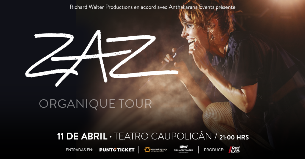 Zaz regresa a Chile el próximo martes 11 de abril en el marco de «Organique Tour», con el que está recorriendo Europa y en los próximos meses llegará a Sudamérica. El público chileno podrá disfrutar sus grandes clásicos como: «Je veux, On ira», «Éblouie par la nuit», «Que vendrá» y su último hit «Imagine».